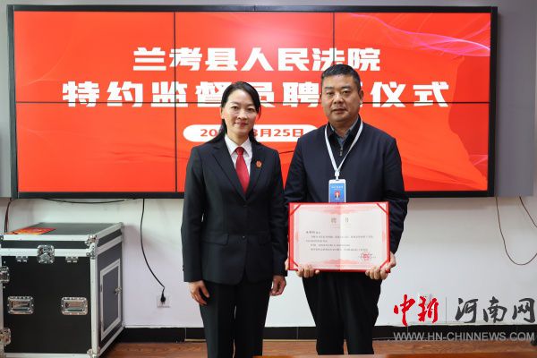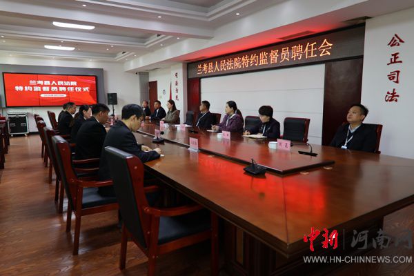中新河南網(wǎng)3月25日電:為進(jìn)一步健全外部監(jiān)督機(jī)制,拓寬監(jiān)督渠道,提升司法透明度和公信力。3月25日上午,蘭考縣法院召開特約監(jiān)督員聘任儀式暨座談會(huì)。黨組書記、院長(zhǎng)劉亞萍出席會(huì)議并講話,新受聘的特約監(jiān)督員全國(guó)人大代表、蘭考縣三義寨鄉(xiāng)白云山村黨支部書記陳保超等人參會(huì)。