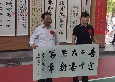 中新河南網(wǎng)5月24日電(吳玉良 馮福 田宋超)由河南省開封市教育體育局主辦,市教育科學(xué)研究院、開封市教育書法研究會承辦、開封市第27中學(xué)協(xié)辦的《喜迎二十大,書寫新篇章2022年開封市書法名家及師生墨香書法展示》活動,5月22日在中國書法名城開封市第27中學(xué)濱河校區(qū)體育館隆重舉行。展出的百余幅開封市書法名家及師生的獲獎作品,書法名家及師生現(xiàn)場書寫“喜迎二十大,書寫新篇章”為主題的書法作品,顯示了“書法名家進(jìn)校園”活動取得可喜成果。