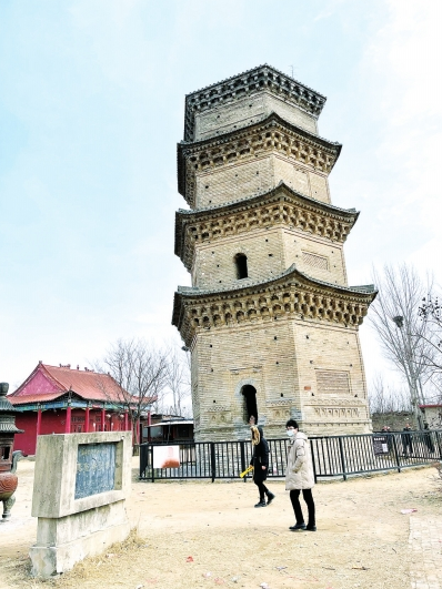 近日,記者幾經(jīng)打聽(tīng),找到了中牟縣黃店鎮(zhèn)冉家村。在該村的東邊曠野中,遠(yuǎn)遠(yuǎn)就看到了一高一矮兩座古塔。在壽圣寺雙塔景區(qū)石階旁,立著一塊黑色的石碑,正面上方寫(xiě)著“全國(guó)重點(diǎn)文物保護(hù)單位——壽圣寺雙塔”,下方寫(xiě)著“中華人民共和國(guó)國(guó)務(wù)院2013年3月5日公布”和“河南省人民政府2016年10月1日立”。由此可以看出,壽圣寺雙塔于2013年就被列入全國(guó)重點(diǎn)文物保護(hù)單位。