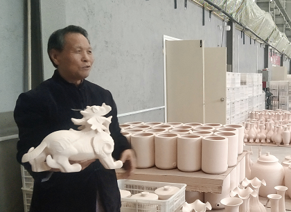 中新河南網3月29日電(李月河 李貴民)3月29日上午,在河南寶豐縣汝瓷產業(yè)園區(qū)“中汝廷懷”藝術館內,中國非物質文化遺產傳承人李廷懷大師在給客人細心講解新春第一窯精品力作瑞獸“貔貅”,受到眾多藏友喜歡。