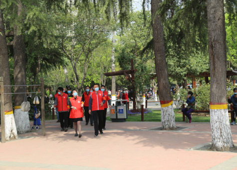 鄭州市五一公園是西區(qū)市民鍛煉休閑的重要場(chǎng)所,人流量大,防控任務(wù)重,為進(jìn)一步加大新冠肺炎疫情防控措施,五一公園增加了公共設(shè)施和重點(diǎn)區(qū)域的消殺次數(shù),各個(gè)出入口設(shè)置了防護(hù)欄,在服務(wù)站等處為市民配備了免洗手消毒液……,在消除病毒傳播隱患的同時(shí),公園還成立了“疫情防控巡邏隊(duì)”,加強(qiáng)人員管理,巡邏隊(duì)在園區(qū)內(nèi)不間斷開(kāi)展疫情防控勸導(dǎo)工作,引導(dǎo)市民掃碼測(cè)體溫入園,對(duì)沒(méi)有或不會(huì)使用智能手機(jī)的市民進(jìn)行信息登記;勸阻人員聚集,科學(xué)佩戴口罩;利用LED屏廣播等滾動(dòng)播放疫情防控宣傳知識(shí),提高市民科學(xué)防控意識(shí);同時(shí)針對(duì)可能發(fā)生的緊急狀況,做好各項(xiàng)應(yīng)對(duì)準(zhǔn)備,一旦發(fā)現(xiàn)游客健康碼、體溫異常情況,將第一時(shí)間帶到臨時(shí)隔離點(diǎn),做好周邊群眾疏散,迅速向上級(jí)部門(mén)匯報(bào),用細(xì)實(shí)工作為市民群眾筑起疫情防控屏障。
