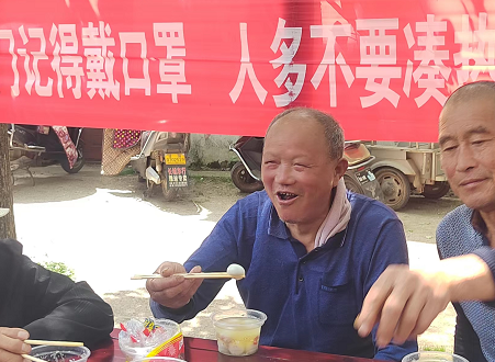 在活動現(xiàn)場,鄉(xiāng)機關干部和馮樓村志愿者齊上陣,洗菜、和面、布置桌凳,大家圍坐在一起,揉面、搟皮、包餃子。老人們看著正在忙碌的志愿者們,激動地說到:“今年的疫情讓孩子們春節(jié)、清明節(jié)都沒回來,本來心里有點不是滋味,可是今天村里邀請我們參加餃子宴,心里暢快了、高興了,真的感謝黨。”鄉(xiāng)主要領導和志愿者為老人端上一碗碗熱氣騰騰的餃子,老人們吃著愛心水餃,臉上洋盛滿了笑容,歡聲笑語中,孝善之花悄然綻放。
