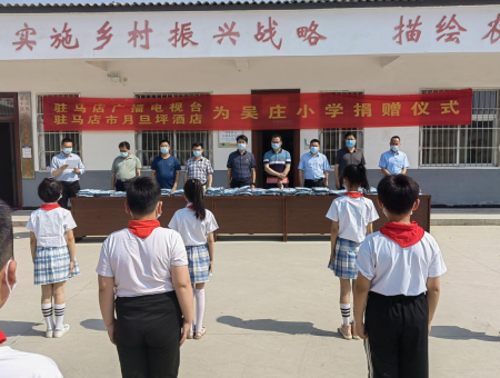 中新河南網(wǎng)5月26日電 5月25日上午,駐馬店市廣播電視臺(tái)攜手駐馬店市月旦坪酒店到玉山鎮(zhèn)吳莊村,舉行愛心校服捐贈(zèng)儀式。參加捐贈(zèng)儀式的有駐馬店廣播電視臺(tái)黨組成員、副臺(tái)長(zhǎng)劉榮亞,玉山鎮(zhèn)鎮(zhèn)長(zhǎng)陳哲宇、駐馬店廣播電視臺(tái)科教頻道總監(jiān)馮亮、駐馬店尚明教育董事長(zhǎng)李明超、駐馬店月旦坪大酒店總經(jīng)理李俊立、玉山鎮(zhèn)中心校校長(zhǎng)牛新坡、吳莊村駐村第一書記曾龍、吳莊村黨支部書記黃明喜。