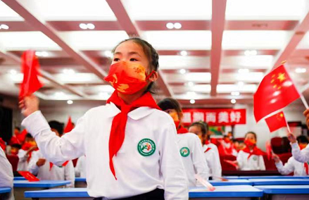 面向隊(duì)旗,一年級的新隊(duì)員們右手握拳、莊重宣誓:“我是中國少年先鋒隊(duì)隊(duì)員,我熱愛中國共產(chǎn)黨,熱愛祖國,熱愛人民,好好學(xué)習(xí),好好鍛煉,準(zhǔn)備著:為共產(chǎn)主義事業(yè)貢獻(xiàn)力量!”