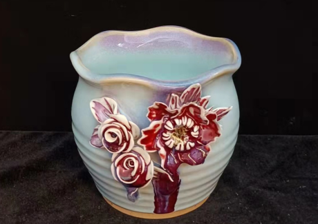 河南禹州市神垕鎮(zhèn)古鈞源鈞窯經(jīng)理王松濤,以獨特的鈞瓷捏塑版畫技藝,獨辟蹊徑,靠一招鮮吃遍天的創(chuàng)作理念,讓“新、特、奇”成為鈞瓷的靈魂,從而在業(yè)界聲名鵲起,脫穎而出。他的作品既有煤燒釉色的深沉凝重,又有氣燒鈞瓷的艷麗潤澤,瑰麗萬千,多彩無窮。