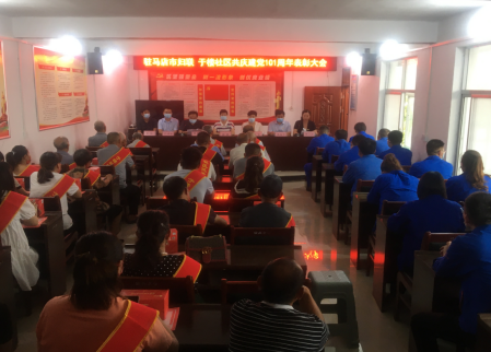 中新河南網(wǎng)6月30日電(史欣欣) 6月29日下午,駐馬店市婦聯(lián)機(jī)關(guān)黨支部與于樓社區(qū)黨支部聯(lián)合開展了慶建黨101周年表彰大會(huì),回顧黨的光輝歷史,繼承和發(fā)揚(yáng)黨的光榮傳統(tǒng)和優(yōu)良作風(fēng),宣傳典型、表彰先進(jìn),進(jìn)一步增強(qiáng)社區(qū)黨組織的凝聚力。市婦聯(lián)副主席劉楠、張宏,首創(chuàng)環(huán)境駐馬店黨支部組織宣傳委員李瑞軍、紀(jì)檢委員袁軍等支部委員代表和全體黨員以及工程總指揮呼哲新,褚堂街道人大工委主任呂勇起,駐村工作隊(duì)、于樓社區(qū)黨員干部代表、獲獎(jiǎng)代表參加會(huì)議。褚堂街道辦事處主任張東輝主持會(huì)議。