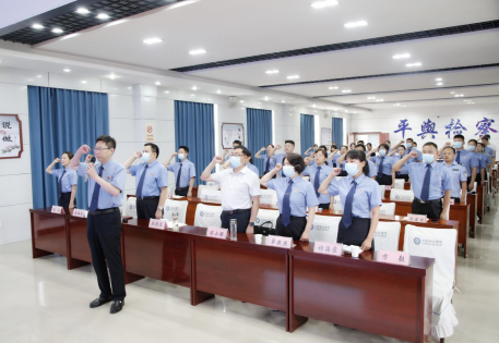 “我志愿加入中國(guó)共產(chǎn)黨,擁護(hù)黨的綱領(lǐng),遵守黨的章程……”黨組書(shū)記、檢察長(zhǎng)段桂東帶領(lǐng)全體干警面向黨旗,高舉右拳,重溫入黨誓詞。鏗鏘的誓詞,激勵(lì)著每一位干警。