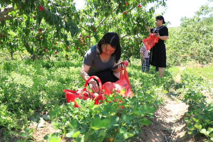 中新河南網(wǎng)7月14日電(馬文忠 王國干)7月13日,家居葉縣城區(qū)的張延偉帶著父母、岳父岳母、妻子及兩個過暑假的孩子,驅(qū)車20分鐘來到葉縣葉邑鎮(zhèn)老鴉張村優(yōu)質(zhì)桃種植園,賞景游玩、采摘桃子、品嘗鮮果、刨挖野菜,盡情享受鄉(xiāng)村游的幸福時光,可把一大家子人給樂壞了。