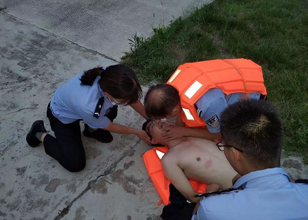 演練分為“模擬溺水”和“現(xiàn)場救援”兩個環(huán)節(jié)進(jìn)行。情景假設(shè)為有一名群眾失足落水,請求鄉(xiāng)派出所救援。長臺關(guān)鄉(xiāng)派出所警務(wù)人員接到報警后,立即組織救援人員趕赴現(xiàn)場進(jìn)行處置。