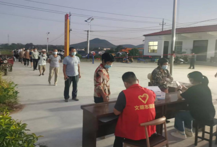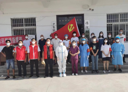 中新河南網(wǎng)7月25日電(張國強(qiáng) 白東亮)昨日,夏日的中原舞鋼市,早上4點(diǎn)半鐘天已拂曉,一勾殘?jiān)聳|升九霄。月光和著燈光下,該市尹集鎮(zhèn)連莊村黨群服務(wù)中心廣場上,先期到達(dá)的尹集鎮(zhèn)機(jī)關(guān)包村領(lǐng)導(dǎo)李紅巖、包村干部尹冠普和連莊黨支部書記王瑞祥等人正在忙碌著擺放桌橙、拉警戒繩、劃分檢測登記區(qū)……期間尹集鎮(zhèn)衛(wèi)生院的孫紅燕、舞鋼市中醫(yī)院的閆麗娜、張?jiān)弃Q三位核酸檢測采樣醫(yī)生相繼在4點(diǎn)50分之前全部到位。
