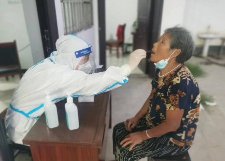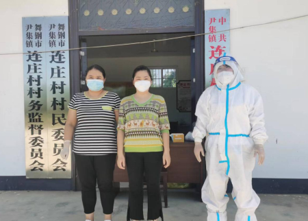 尹集鎮(zhèn)連莊村地處山區(qū),是舞鋼市重點(diǎn)革命老區(qū)村,面積約4平方公里,全村有6個(gè)村民組,372戶農(nóng)戶,1472人。連莊村連續(xù)實(shí)施核酸檢測12天以來,孫紅燕、閆麗娜、張?jiān)弃Q三位同志一直都是負(fù)責(zé)該村醫(yī)檢組采樣的醫(yī)生。12天時(shí)間中,她們?nèi)似鹪缲澓冢谴髟,頂烈日?zhàn)酷暑,斗淫雨,風(fēng)餐露宿,廢寢忘食克服種種困難,在鎮(zhèn)村干部和廣大村民群眾大力支持下,共完成檢測采樣1.17萬人次。他們白衣執(zhí)甲,勇敢逆行,頑強(qiáng)拼搏的行為被尹集鎮(zhèn)連莊村干群看在眼里、記在心頭尊稱為“鏗鏘戰(zhàn)疫最美三朵玫瑰”。