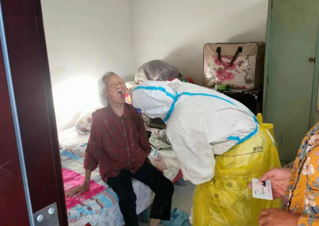 孫紅燕今年43歲,是舞鋼市尹集鎮(zhèn)衛(wèi)生院藥房科醫(yī)師,身邊育有一兒一女,兒子15歲上初中,女兒6歲上學(xué)前班。猝不及防的疫情來襲,7月10日鎮(zhèn)衛(wèi)生院召開緊急會(huì)議,抽調(diào)人員配合市醫(yī)院11日下村做核酸檢測,孫紅燕沒有憂豫當(dāng)場報(bào)名下村。下村后她不怕吃苦,主動(dòng)選擇送檢上門入戶最危險(xiǎn),最累的活干;連莊村6個(gè)村民組有密接和次密接隔離戶1戶,其他30多戶40多人都是老弱病殘、癡呆聾啞傻的特殊人群,這些人也是最需要幫助和關(guān)愛的人。在連莊村12次核酸檢測中,11次都是孫紅燕在鎮(zhèn)村干部的陪同下,不顧室外高溫風(fēng)雨,山高坡陡溝深,穿著笨且不透氣的防護(hù)服,步行上門入戶居室內(nèi)、病床上送檢,送村戶不漏1人的關(guān)愛。每次下村入戶送檢大約需要兩個(gè)小時(shí),行程幾公里;每次完成任務(wù)回到村服務(wù)中心,她防護(hù)服下的衣服都會(huì)被汗水濕透,需要擰水或者更換。7月24日拂曉,因天黑急著趕路入連莊村不慎崴傷了腳,但她忍住疼痛輕傷不下火線,沒有向院領(lǐng)導(dǎo)請(qǐng)假休息。見到孫紅燕腳傷不能行走這一情況,來自舞鋼市中醫(yī)院的張?jiān)弃Q醫(yī)師主動(dòng)替她下村入戶送檢,讓孫紅燕坐在村室采樣。當(dāng)天孫紅燕采祥400多人,一直堅(jiān)持到圓滿完成任務(wù)。