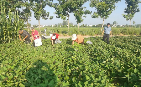 在種植基地紅薯茶葉采摘現(xiàn)場,焦獻中結(jié)合高廟村紅薯產(chǎn)業(yè)發(fā)展、紅薯小鎮(zhèn)打造以及“五星黨支部”創(chuàng)建等經(jīng)驗,為小王營村黨員干部代表“傳經(jīng)送寶”、答疑解惑。
