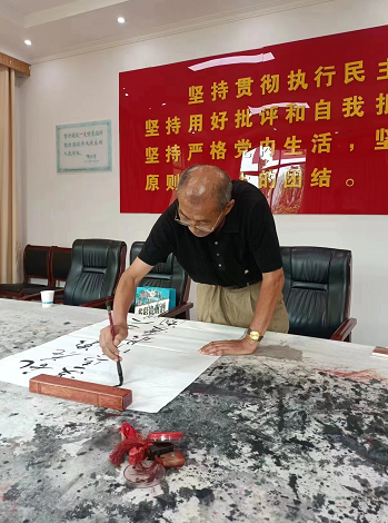 “書畫藝術是中國傳統(tǒng)文化最重要的一部分,也是深受廣大武警官兵喜愛的藝術形式。自己也是軍人出身,有著深深的軍人情結,能夠在八一節(jié)為武警官兵奉獻文化藝術,是責任也是義務。”縣書法協(xié)會副主席兼秘書長炊秋征說。