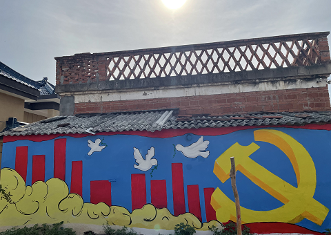 8月18日至21日的四天時間,學(xué)生們冒著近40℃高溫,早晨六點(diǎn)開始到晚上七點(diǎn)就這樣的“早出晚歸”的為方莊繪制墻畫9幅近500平方,一面面鮮艷靚麗的墻體彩繪與周圍民居巧妙融合,一幅幅各具特色的內(nèi)容使墻面瞬間靈動起來,讓群眾出門即“望得見山、看得見水,記得住黨的好政策”,生活在畫中的群眾也自覺地清理起來了房前屋后。一墻一風(fēng)景,一村一文化。學(xué)生們用手中的畫筆培育文明鄉(xiāng)風(fēng)、美化人居環(huán)境,以“文化墻”助推“文化強(qiáng)”,繪出長臺關(guān)鄉(xiāng)鄉(xiāng)村振興“精氣神”。
