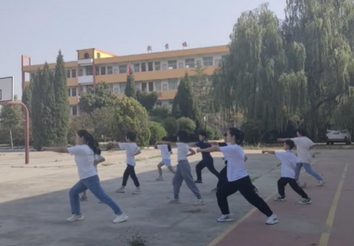 “天地玄黃,宇宙洪荒……”,每天大課間,官會鎮(zhèn)丁營小學的操場上空,《千字文》誦讀聲響遏行云,孩子們在操場集合、列隊,有力地揮拳、推掌、踢腿、蹲馬步、轉身回旋……孩子們一邊誦讀《千字文》,一邊表演中華武術,語勢鏗鏘有力,動作輕巧嫻熟。“我在學校最期待的就是陽光大課間活動了,既可以強健體魄,又能放松身心。”