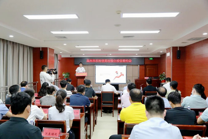 中新河南網(wǎng)6月14日電(梁靖 李優(yōu))為認(rèn)真貫徹落實(shí)5月25日全國穩(wěn)住經(jīng)濟(jì)大盤電視電話會議精神及許昌農(nóng)信辦相關(guān)工作要求,進(jìn)一步扛穩(wěn)扛牢“服務(wù)三農(nóng)”使命,加大對縣域經(jīng)濟(jì)發(fā)展支持力度,6月10日上午,禹州農(nóng)信聯(lián)社組織召開銀企授信簽約會,禹州市人民政府副市長王建偉、許昌銀保監(jiān)分局禹州監(jiān)管組、市金融事務(wù)中心、科工局、商務(wù)局、人民銀行禹州支行相關(guān)領(lǐng)導(dǎo)出席會議, 30余名企業(yè)及個(gè)體工商戶代表參加會議。