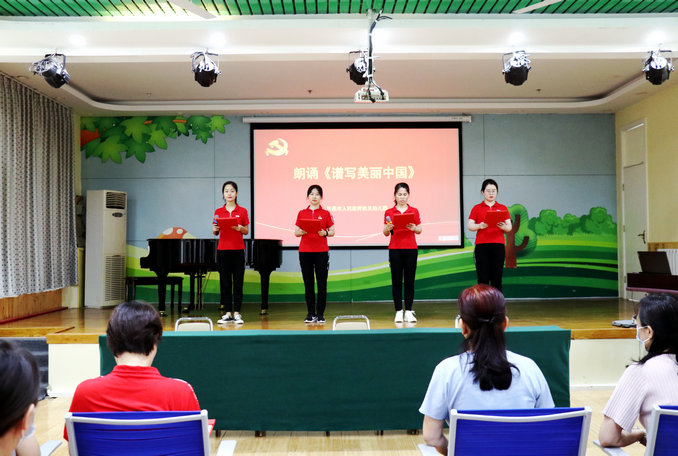 黨員教師詩(shī)朗誦《譜寫(xiě)美麗的中國(guó)》、全體黨員高唱《沒(méi)有共產(chǎn)黨就沒(méi)有新中國(guó)》,獻(xiàn)禮偉大的黨和祖國(guó)。
