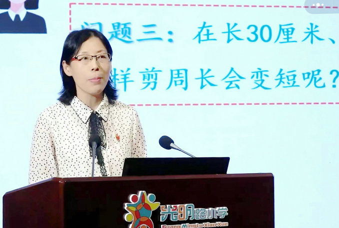 許昌市光明路學(xué)校教育集團(tuán)王海燕老師帶來了《再探周長》研討課與《聚焦“大問題”挖掘“深”思維》——《再探周長》的教學(xué)實(shí)踐與思考。王老師精心整合設(shè)計(jì)開放性的大問題,問題引發(fā)學(xué)生的深度思考。問題引領(lǐng)直擊數(shù)學(xué)本質(zhì),讓學(xué)生對于周長的概念有了更深刻的認(rèn)識。課的結(jié)尾,讓學(xué)生帶著疑問和思考走出課堂,利用學(xué)到的知識和方法繼續(xù)探究,體現(xiàn)了學(xué)無止境的教育理念。