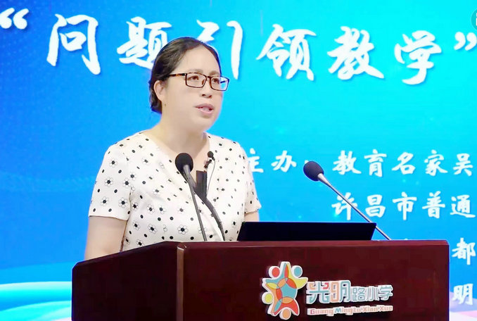 許昌市光明路學(xué)校教育集團(tuán)尚建麗校長針對兩節(jié)研討課進(jìn)行點(diǎn)評。她強(qiáng)調(diào):問題是數(shù)學(xué)的心臟。在教學(xué)中,要思考哪些是牽一發(fā)而動(dòng)全身的,最能體現(xiàn)教學(xué)目標(biāo)或概念本質(zhì)、最能突破教學(xué)重點(diǎn)、難點(diǎn)或思維瓶頸的核心問題。提煉出直指教學(xué)本質(zhì)的“真問題”、直達(dá)教學(xué)目標(biāo)的“大問題”、直擊學(xué)生思維的“好問題”。