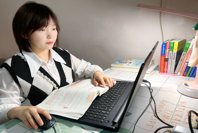 隔著屏幕,顧老師的一天開始了,從早上八點(diǎn)開始在線早讀,布置好任務(wù),和學(xué)生們一起開啟滿格晨讀。看著學(xué)生們認(rèn)真讀書的模樣,一切仿佛和在學(xué)校學(xué)習(xí)沒有區(qū)別。線上課堂中,顧老師為調(diào)動(dòng)學(xué)生積極性,每節(jié)課提前十分鐘進(jìn)入,會(huì)以小游戲或者小視頻來調(diào)動(dòng)學(xué)生積極性,學(xué)生非常喜歡。課堂中她要求學(xué)生認(rèn)真聽講,邊聽邊批注,為讓每個(gè)孩子都參與到學(xué)習(xí)中,每節(jié)課她都會(huì)把連麥互動(dòng)的學(xué)生名字記下來,這樣一周下來班內(nèi)四十五個(gè)孩子都能有發(fā)言的機(jī)會(huì),在評(píng)論界面里也對(duì)積極回答問題的學(xué)生及時(shí)點(diǎn)名表揚(yáng),讓學(xué)生感受到自己時(shí)刻被關(guān)注。