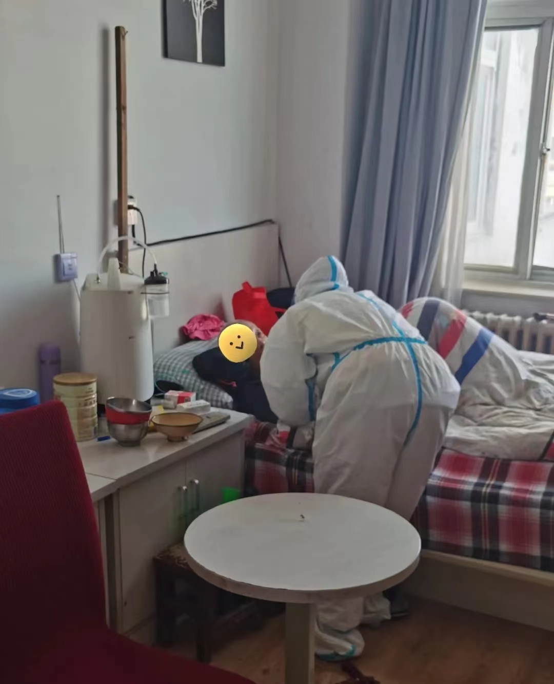 緊張的核酸采集從早晨9點(diǎn)持續(xù)到下午2點(diǎn),結(jié)束核酸檢查后,李雪靜才吃上午飯。吃過飯后,社區(qū)工作人員說還有一個(gè)養(yǎng)老院需要采集,大概60多人,大部分都是臥床,行動(dòng)不便的偏癱老人。