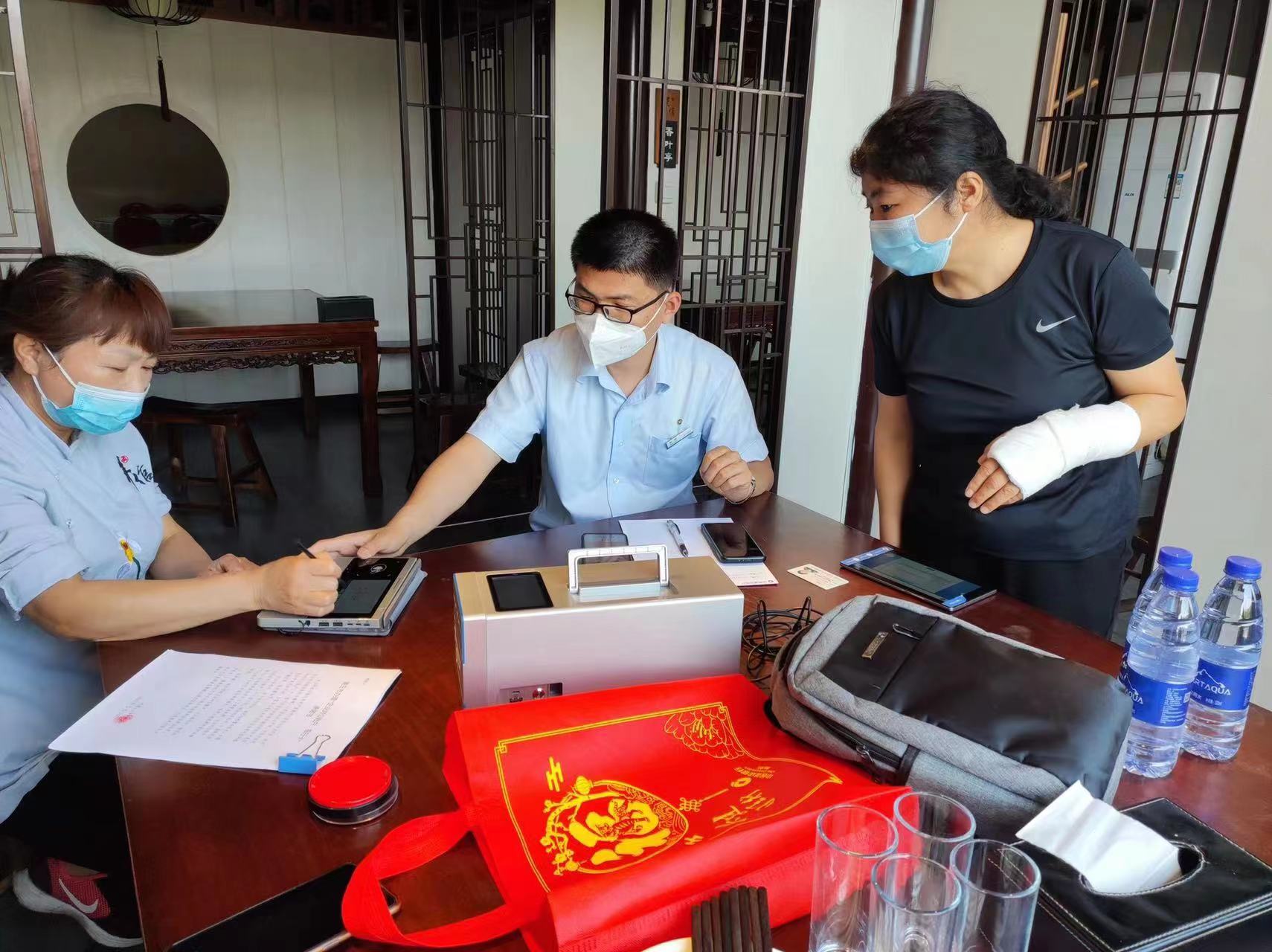 前段時間,在外出工作中,楊玉勤同志不幸左手手腕和手臂骨折,但是當聽到網(wǎng)點人員緊張時,她便主動放棄休息時間,帶傷堅持隨隊外出,為客戶上門服務(wù),獲得大家稱贊。大家有時勸她說:“楊老師,您明年都退休了,養(yǎng)好身體抱孫子不比什么都強”,可她卻總是笑著說“既然干了就好好干到底,不能丟了咱建行人的臉!”
