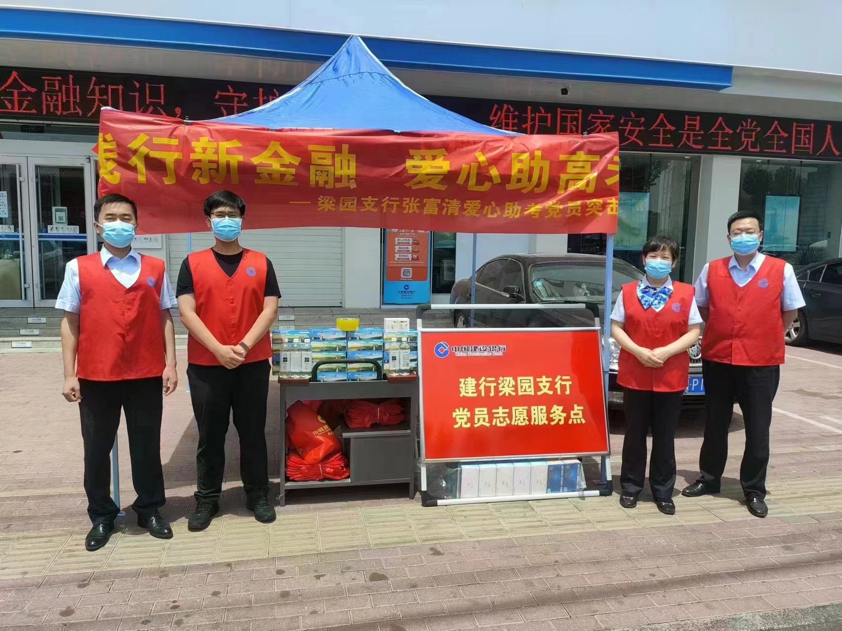 商丘市實驗中學(xué)距離梁園支行直線距離僅百余米,為支持實驗中學(xué)附近考生,做好考生在高考期間的防疫、防暑后勤保障工作,梁園支行于6月6日火速成立張富清愛心助考黨員突擊隊,在凱旋路111號設(shè)立黨員志愿服務(wù)點,開展為期兩天的愛心助考活動。