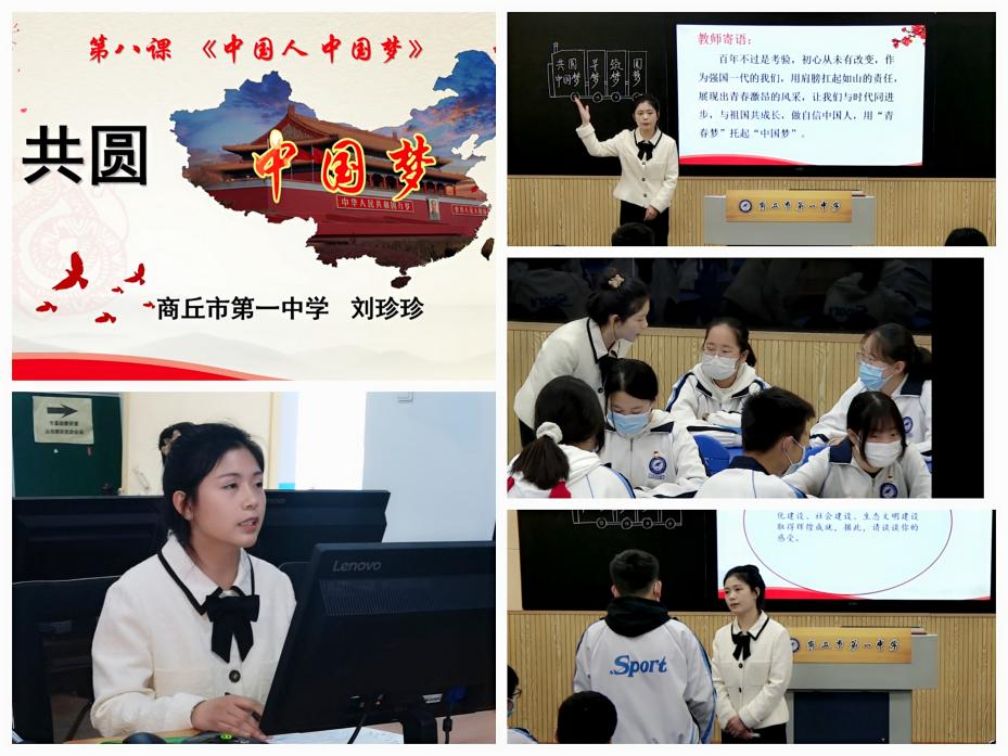 交流會上,劉珍珍老師作為2021年河南省中學德育優(yōu)秀教學案例一等獎獲得者,代表商丘會場講授了九年級道德與法治上冊第四單元第八課第二框《共圓中國夢》。本課以共圓中國夢這趟列車為主線,將尋夢、筑夢、圓夢三個旅程串聯(lián),讓學生積極參與課堂教學。
