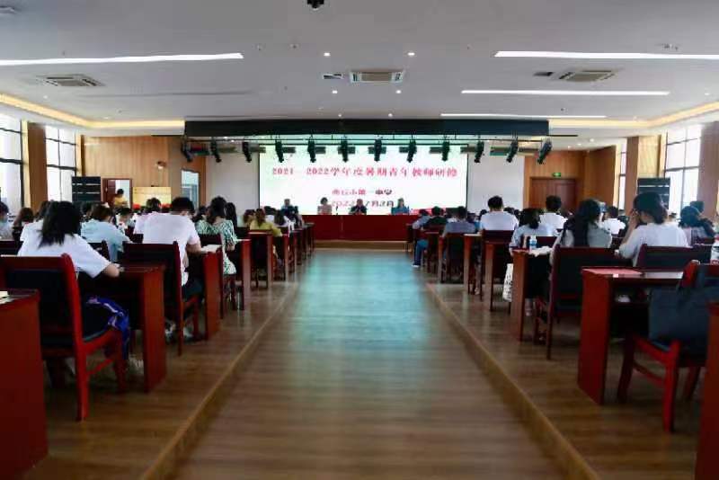 會議中,武星首先回顧了往年的研修成果,并強調(diào)了研修學(xué)習(xí)對青年教師發(fā)展的重要性。青年教師為學(xué)校增添了活力和新鮮血液,但是面對實踐經(jīng)驗的不足,需要不斷學(xué)習(xí),積極參加研修活動。她對本次研修活動及假期教師的自我研修進行了總體部署:第一,本次研修時間為7月2日至7月4日,研修內(nèi)容分為專家講座及教師實踐兩大部分;第二,暑假期間青年教師需要制定自修計劃,補弱項和短板,重視基本功的錘煉,不斷學(xué)習(xí)。她寄語每位青年教師教師,要積蓄力量,培養(yǎng)精湛的技藝,厚植高尚的師德,方能在教育之路上策馬奔騰,縱橫馳騁。