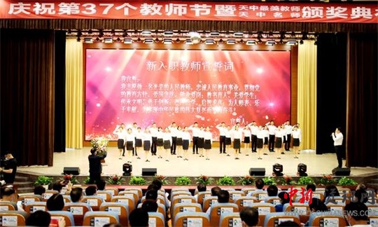 與會(huì)領(lǐng)導(dǎo)共同參觀了“天中最美教師”先進(jìn)事跡展,觀看了全市教育事業(yè)發(fā)展宣傳片,并為優(yōu)秀教師、天中名師、天中最美教師和提名獎(jiǎng)代表頒獎(jiǎng)。30名新入職教師代表進(jìn)行了入職宣誓。