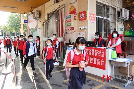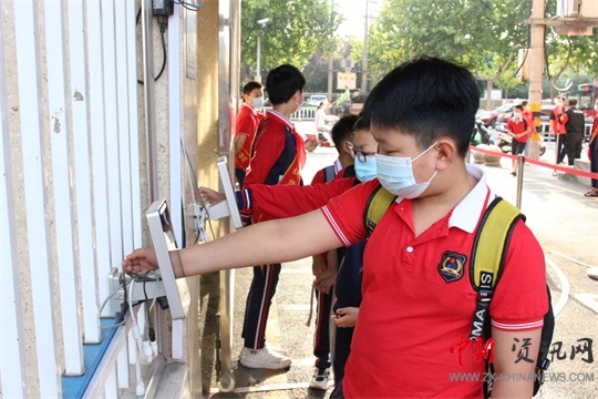 同學們著裝整齊,保持安全距離,分時段錯峰入校,按照導行線,經(jīng)紅外測溫儀檢測無異常后,從安全通道有序入校。張張笑臉、聲聲問候,讓開學第一天的清晨充滿溫馨和甜蜜。