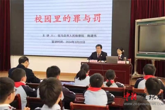 中新河南網(wǎng)駐馬店3月23日(通訊員:李鵬飛)為進(jìn)一步加強(qiáng)新時(shí)代校園法治建設(shè),共同構(gòu)建和諧平安的校園環(huán)境,增強(qiáng)青少年的法治觀念和安全意識(shí),全面推進(jìn)法治校園建設(shè)。3月22日,駐馬店第二實(shí)驗(yàn)小學(xué)邀請(qǐng)學(xué)校法治副校長(zhǎng)、市人民檢察院第一檢察部主任陳建偉檢察官走進(jìn)校園,為師生講授了生動(dòng)充實(shí)的春季法治第一課。