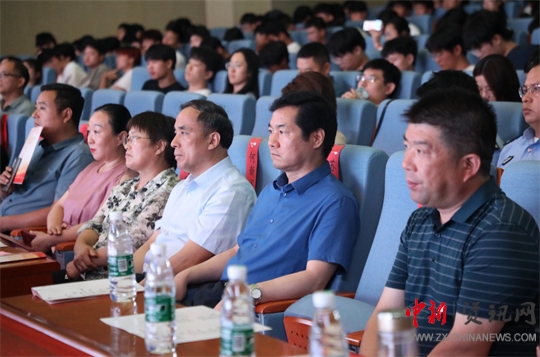 中新河南網(wǎng)駐馬店6月28日(通訊員:賈雨)6月27日晚,原創(chuàng)音樂思政課《我愛這土地》在駐馬店職業(yè)技術(shù)學(xué)院報(bào)告廳舉行。駐馬店市委宣傳部副部長何新閣、四級調(diào)研員張穎、文藝科科長王軼高,市教育局思政科科長李蔚巍,駐馬店幼兒師范高等?茖W(xué)校組織部部長、馬克思主義學(xué)院黨總支書記陳有良、宣傳部部長張艷秋,駐馬店著名導(dǎo)演編劇作曲張?bào)w龍、周明理、王小更、李超、汪磊、李大強(qiáng)等,駐馬店職業(yè)技術(shù)學(xué)院黨委書記蘇新留、副校長李鳳霞、各職能部門負(fù)責(zé)人、思政課教師、馬克思主義學(xué)習(xí)研究會成員及學(xué)生代表出席活動。