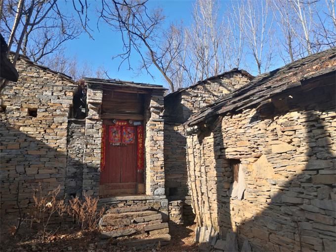 石頭村顧名思義村不離石,石不離村。石板路,石板墻,石板房。人在石上走,水在石上流,草在石上生,樹在石上長。石板路依山依坡,或崎嶇或逶迤,或徒峭或平坦,一直蔓延到山的深處。沿著石板路的兩旁,石板房依山而建,一座座,一棟棟,層層疊疊,錯落有致。佇立期間,環(huán)顧四周,你不能不由衷感嘆先民們的勤勞和智慧。不毀山林,不用一木,利用大自然饋贈的千層石,就地取材,起屋建房,遮風(fēng)擋雨,傳宗接代,綿延香火。